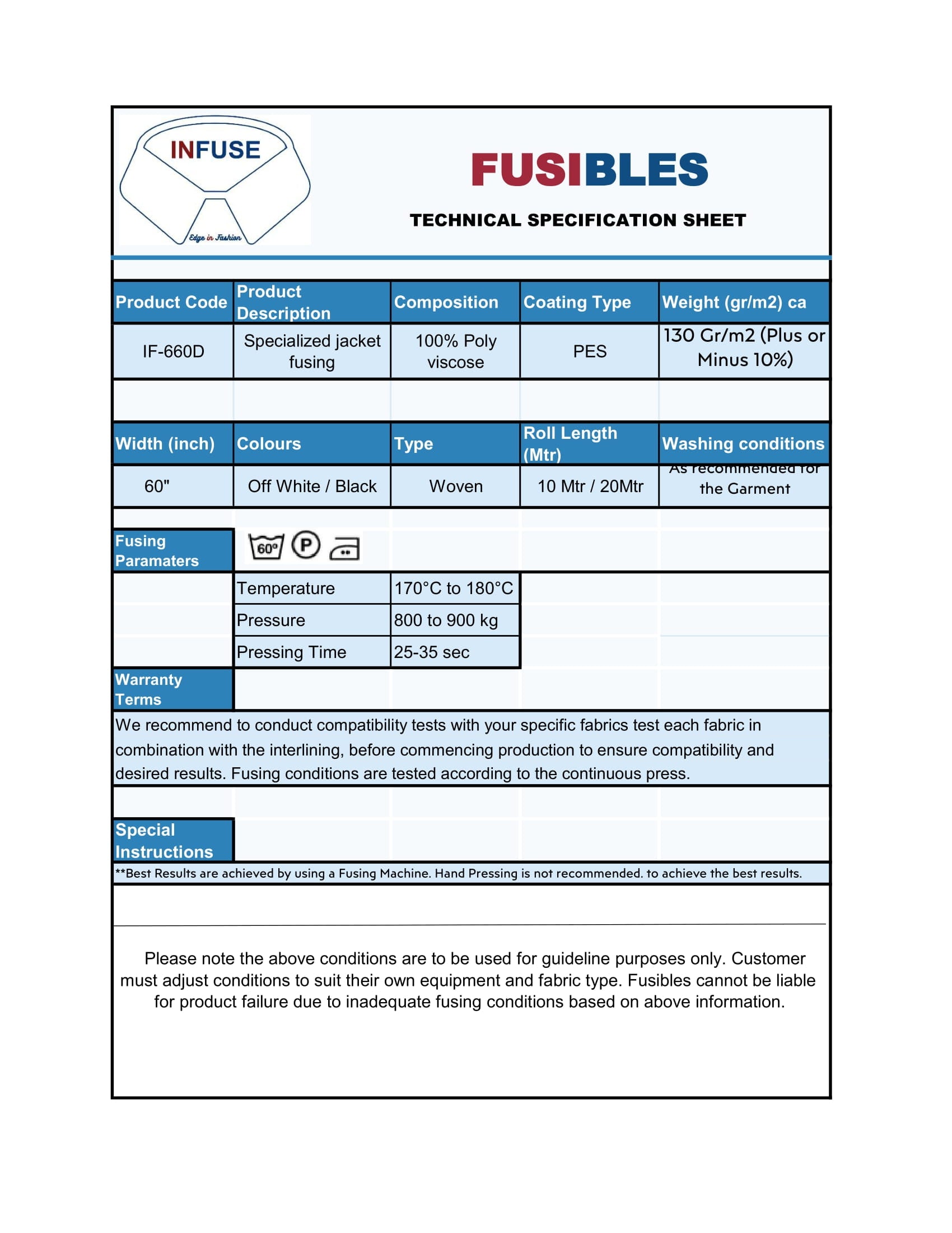 Designed for structured outerwear, IF660D is a robust front fuse interlining ideal for men’s coats. It offers firm support, smooth surface finish, and excellent adhesion across heavier fabrics. Engineered for stability and shape retention, IF660D ensures a clean, tailored look in formal and semi-formal coat constructions.