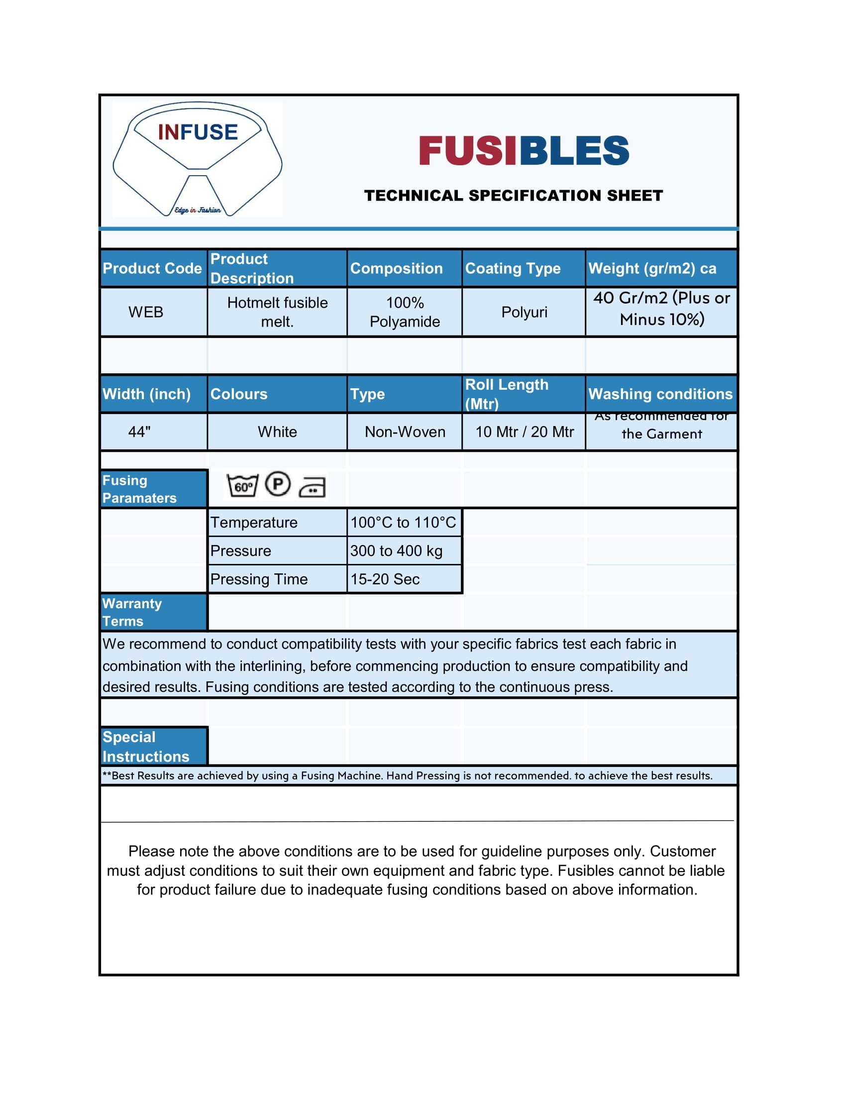 Specially developed for T-shirts and lightweight knits, Web is a non-woven fusible interlining with a soft base and stable structure. Ideal for securing embroidery, woven labels, and heat-transfer logos, it ensures clean adhesion without puckering. Its smooth surface and reliable bond make it perfect for precision branding and embellishment on casual wear.